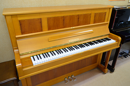 たいへん希少なドイツのピアノメーカー「レーニッシュ」のアップライトピアノが入荷しました。1845年に音楽の都として有名なドイツ・ライプツィヒで創業した伝統のあるピアノメーカーです。ドイツ製ピアノならではの伝統的な製作過程と厳選された材料を使用して製作された素晴らしいピアノです。明るく美しいヨーロッパチェリー色と象嵌細工を施した華麗なアートケースはドイツのクラフトマンシップを感じさせてくれます。是非、ご試弾下さい。